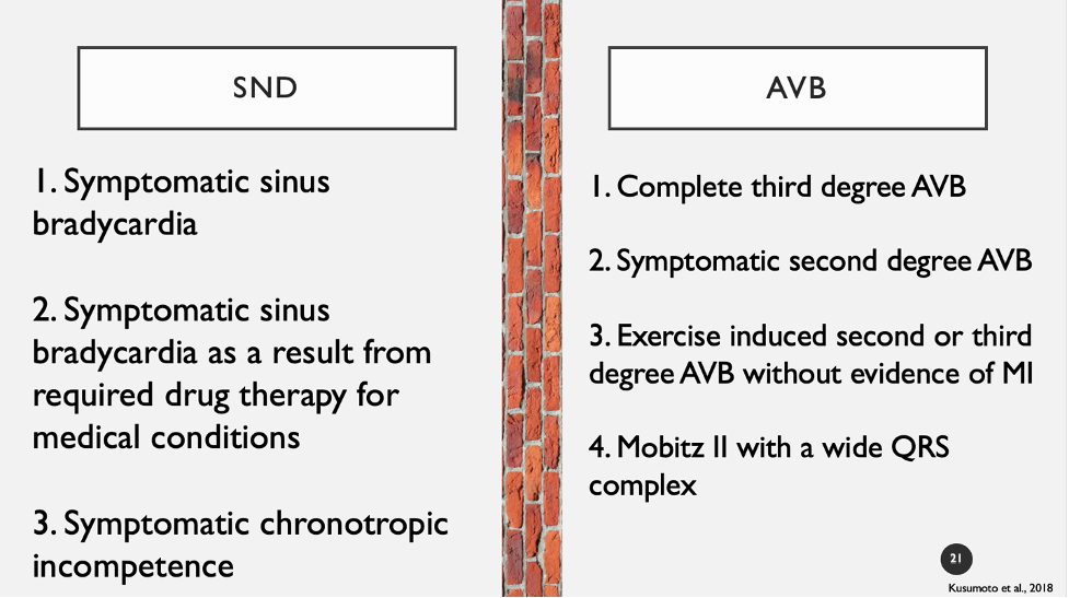 - Below is a brief list of class 1 and 2 indications specifically sinus node dysfunction (SND) and AV blockade – which represent the vast majority of implanted pacemakers