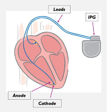 - Leads are fixed into the myocardium
