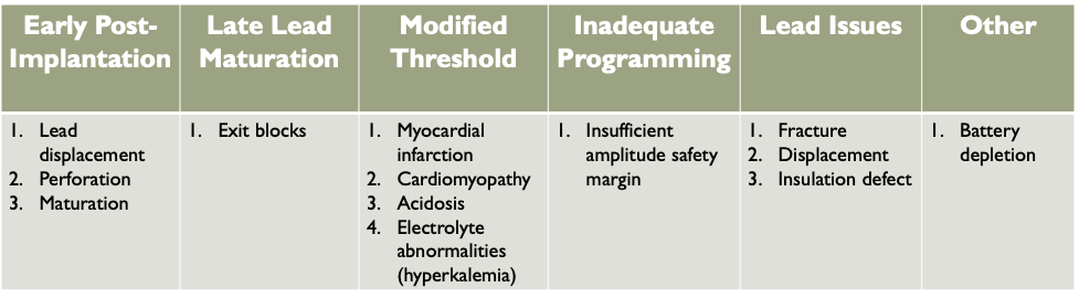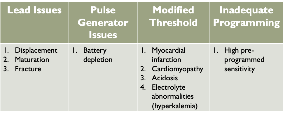 - No paced stimulus is generated from the device resulting in either decreased or absent pacemaker function