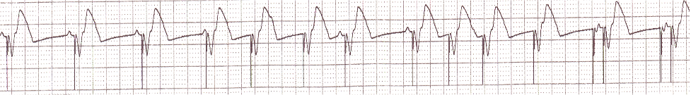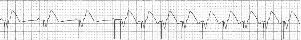 - Here the ventricle is paced with no sensing and thus no response to sensing